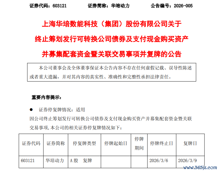 华培动力3月6日公告,此前公司筹划通过发行可转债及支付现金方式,购买无锡晟熠持有的美创智感(无锡)科技有限公司(简称“美创智感”)100%股权,并向不超过35名特定投资者发行股份募集配套资金。由于美创智感公司股权存在质押,与质权人达成确定性的解质押安排仍需一定时间。为维护公司及股东利益,在该事项未妥善解决前,公司决定终止筹划此次重大资产重组事项。公司股票3月9日(星期一)开市起复牌。