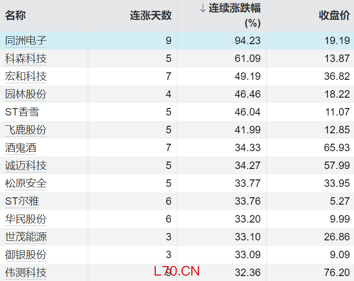 477只个股连续上涨5个交易日及以上