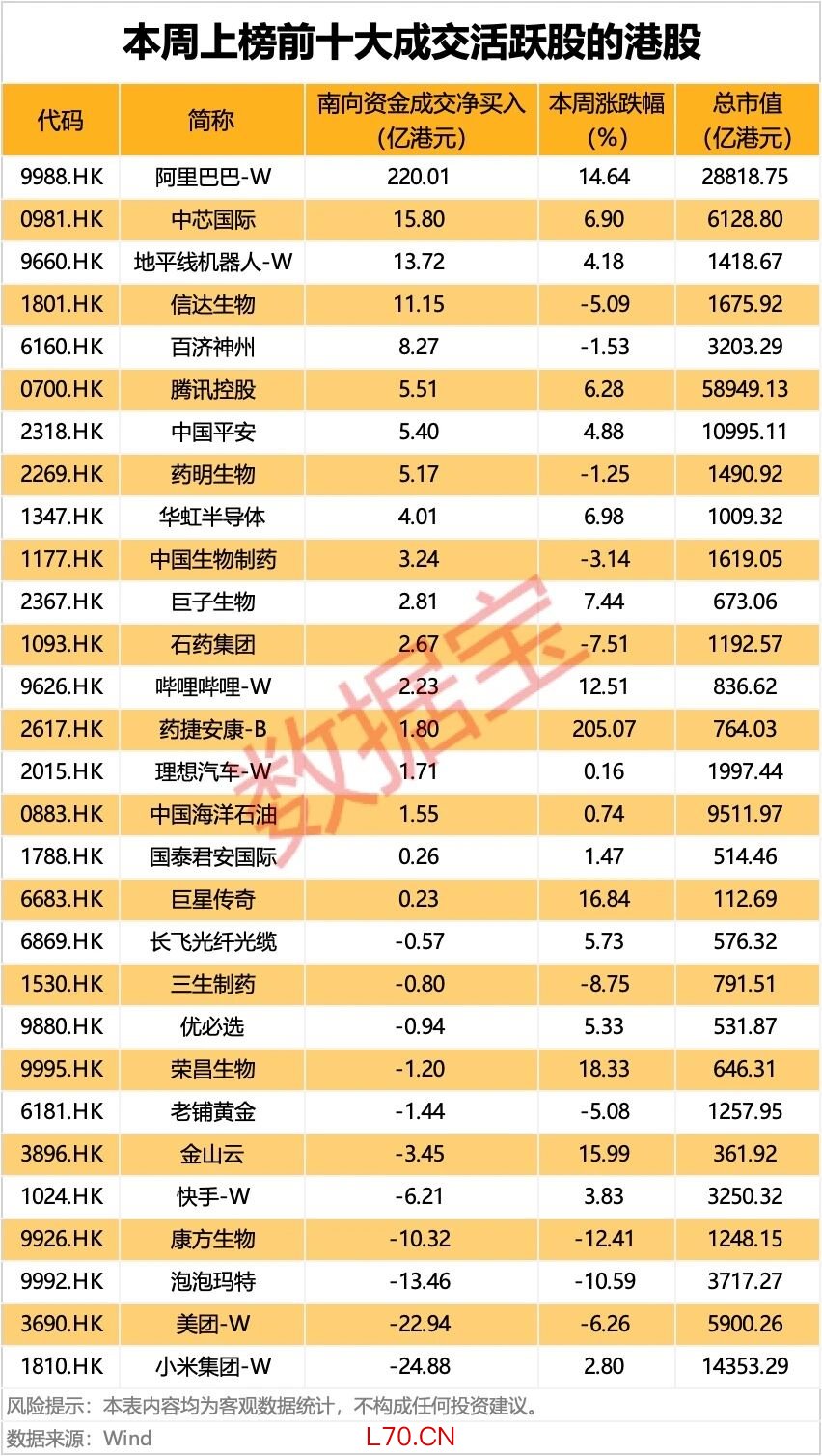 南向资金一周净流入超600亿港元 互联网龙头获重点加仓