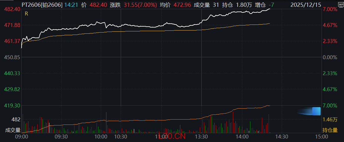 铂期货主力合约涨停
