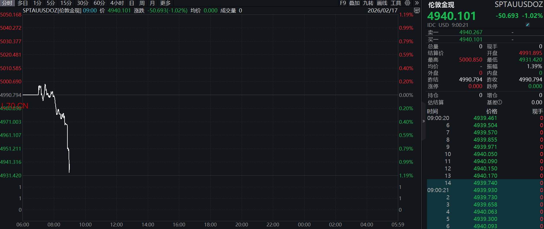 现货金银持续走低,现货黄金跌破4950美元