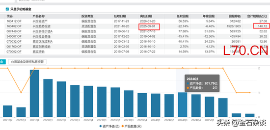 而其管理的另一只基金,兴全合衡三年持有任职回报依然亏损3.1%,若从22年Q2算起,该基金规模也几乎腰斩。由于该基金3年封闭期已到,任相栋可以随时卸任。