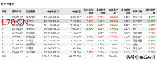 其中,电连技术自去年9月下旬开始持续下跌,25年Q4暴跌14.6%,今年再度暴跌27%;而理想汽车更是如此,从去年7月开始就持续暴跌,半年多时间已经腰斩,而理想汽车成为任相栋第一大持仓的时点正是去年三季度。