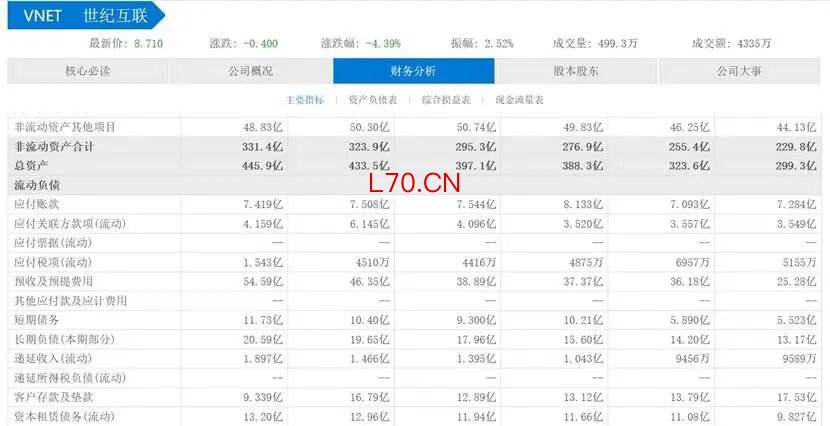 然而,山海新财经分析世纪互联这份高增长的财报发现,总资产与毛利增长背后,总负债大幅增长,净利润却直线下滑。