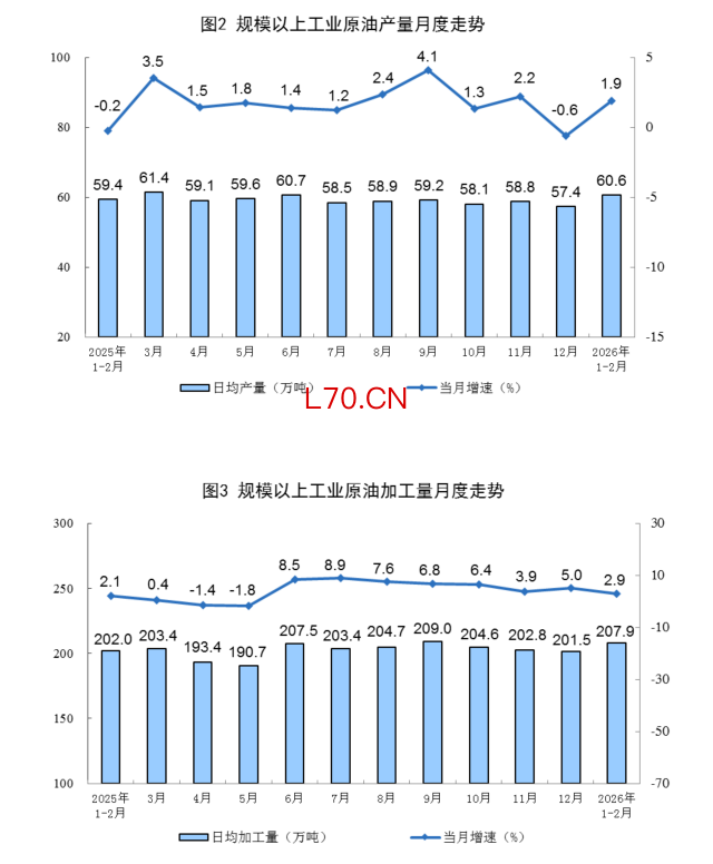 国家统计局:1—2月份,规上工业原油产量同比增长1.9%