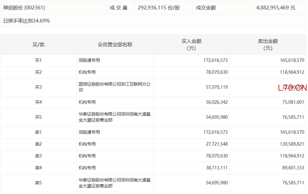 神剑股份今日跌2.21%,有4家机构专用席位净卖出2.14亿元