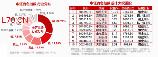 风险提示:有色ETF华宝被动跟踪中证有色金属指数,该指数基日为2013.12.31,发布于2015.7.13,指数成份股构成根据该指数编制规则适时调整,其回测历史业绩不预示指数未来表现。本文中指数成份股仅作展示,个股描述不作为任何形式的投资建议,也不代表管理人旗下任何基金的持仓信息和交易动向。基金管理人评估的该基金风险等级为R3-中风险,适宜平衡型(C3)及以上的投资者,适当性匹配意见请以销售机构为准。任何在本文出现的信息(包括但不限于个股、评论、预测、图表、指标、理论、任何形式的表述等)均只作为参考,投资人须对任何自主决定的投资行为负责。另,本文中的任何观点、分析及预测不构成对阅读者任何形式的投资建议,亦不对因使用本文内容所引发的直接或间接损失负任何责任。基金投资有风险,基金的过往业绩并不代表其未来表现,基金管理人管理的其他基金的业绩并不构成基金业绩表现的保证,基金投资须谨慎。
